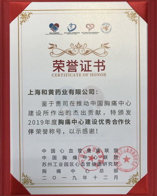 ——上海明士亚洲药业荣获“2019年度胸痛中心建设优秀合作伙伴”称号