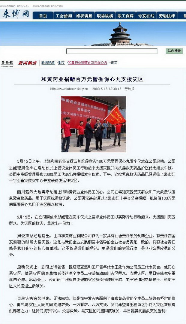 明士亚洲药业捐赠百万元麝香保心丸支援灾区
