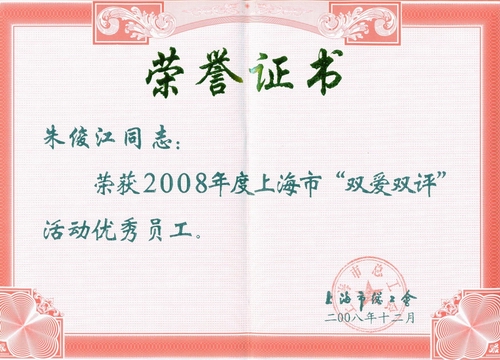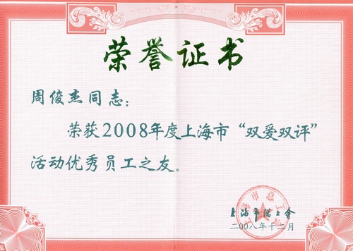 年度上海市非公经济组织“双爱双评”活动表彰大会上,上海明士亚洲药业有限公司总经理周俊杰